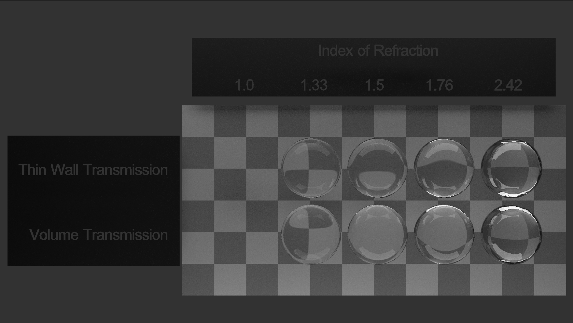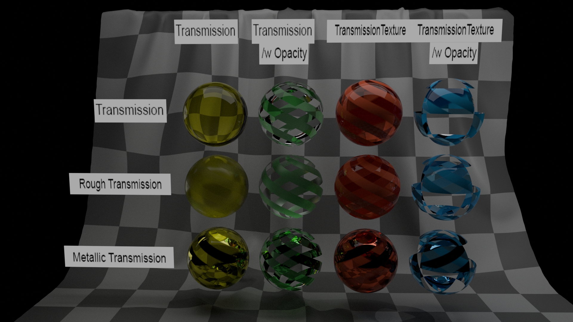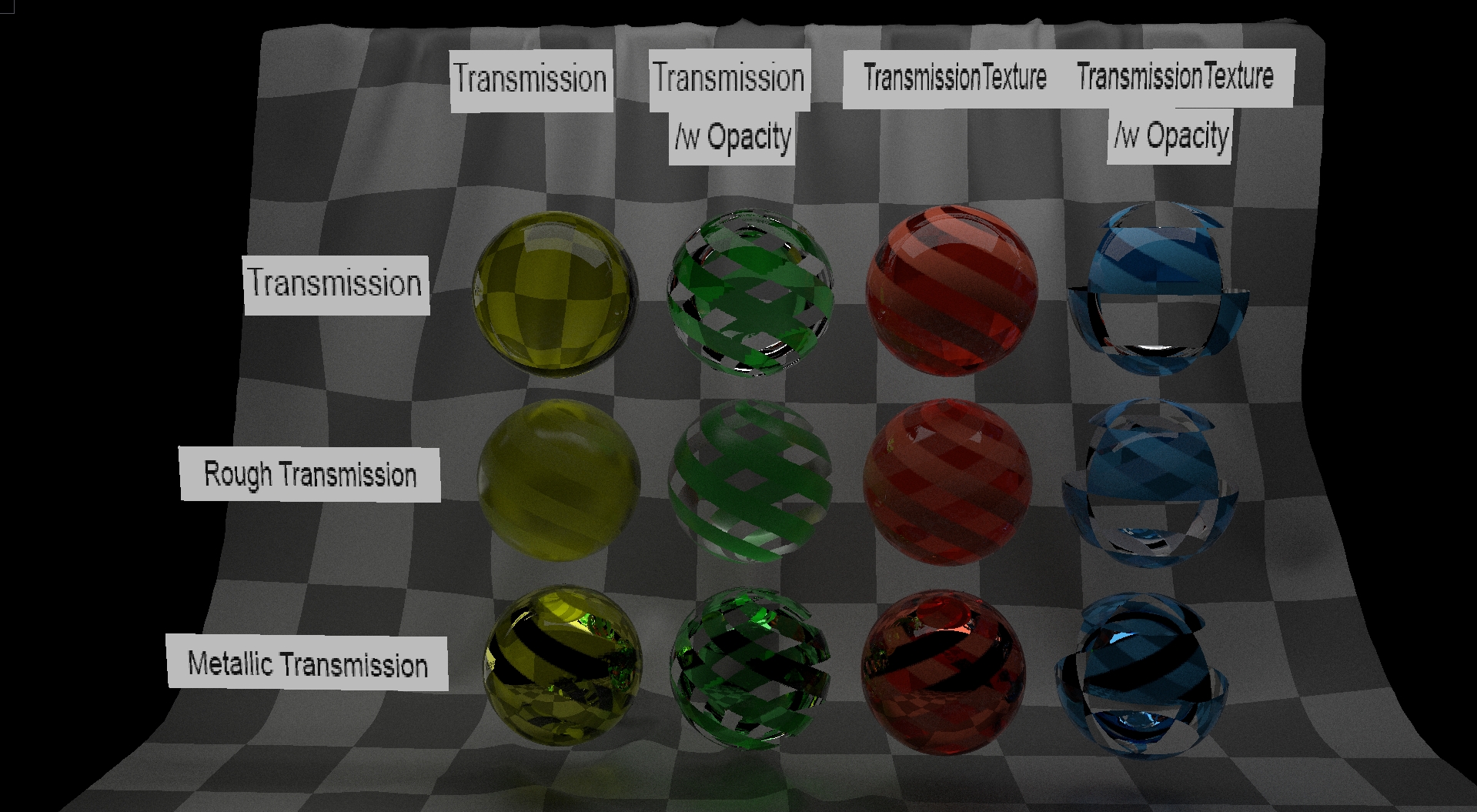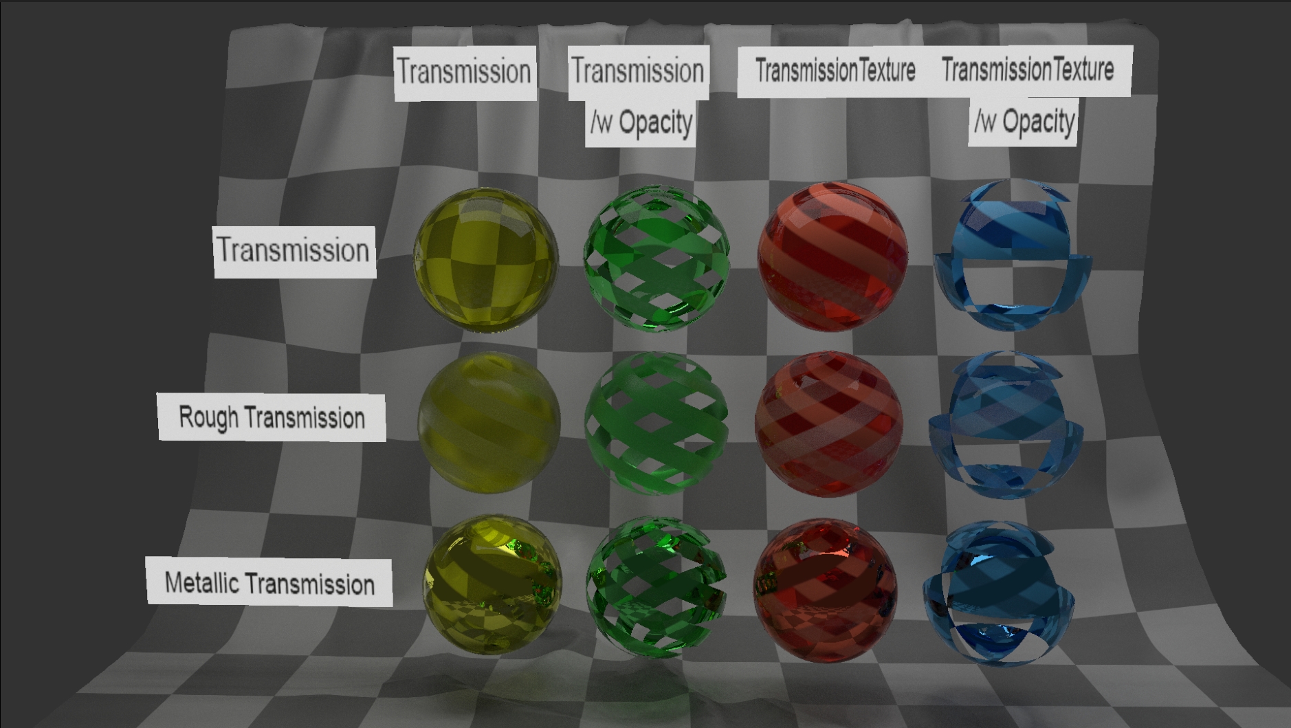 So for each sample we draw a uniform random number between 0 and 1, for each of the inputs that we are considering. The material is fully transmissive if transmission value is greater than random number drawn. Similar check is performed for the other inputs.